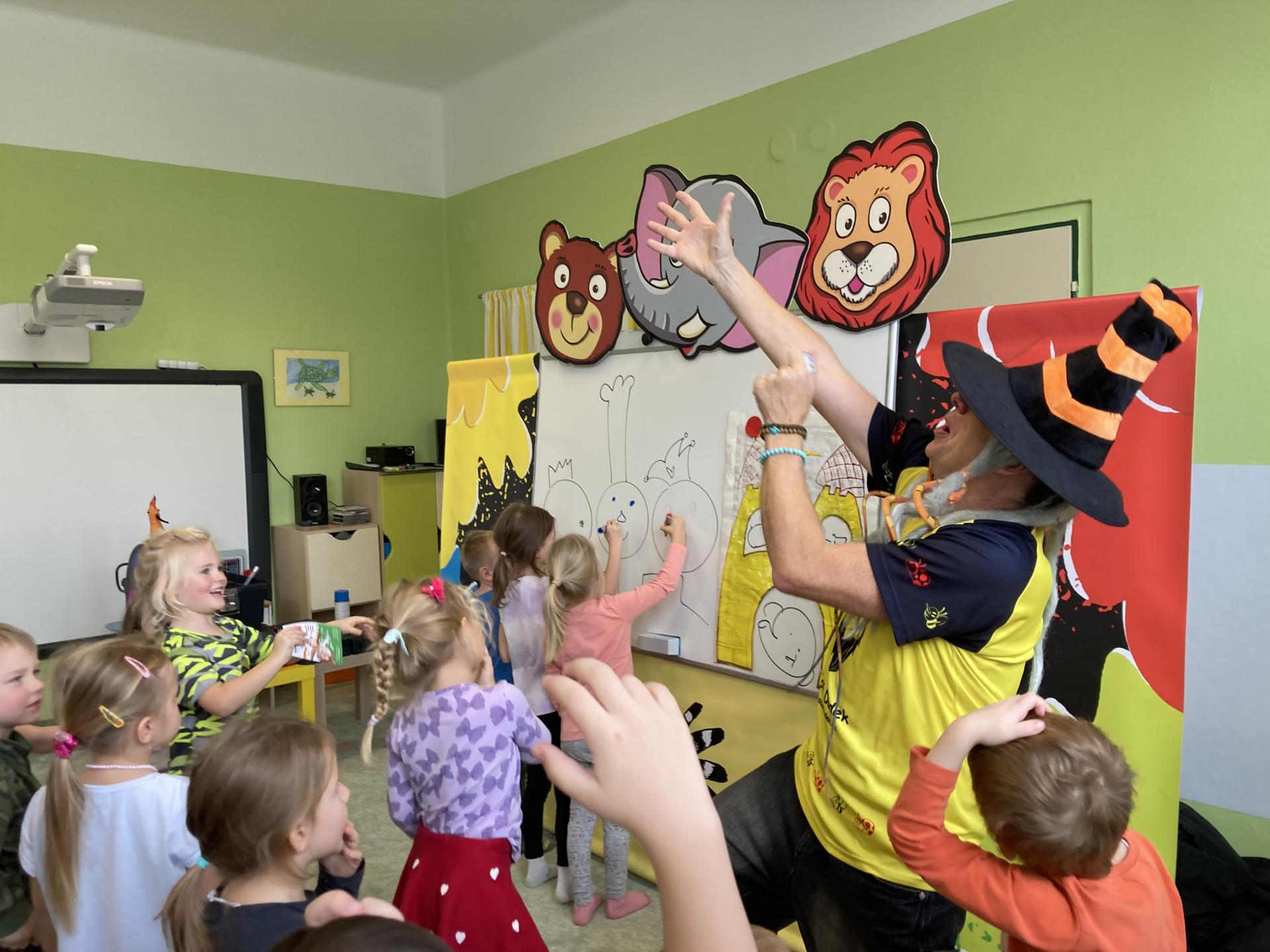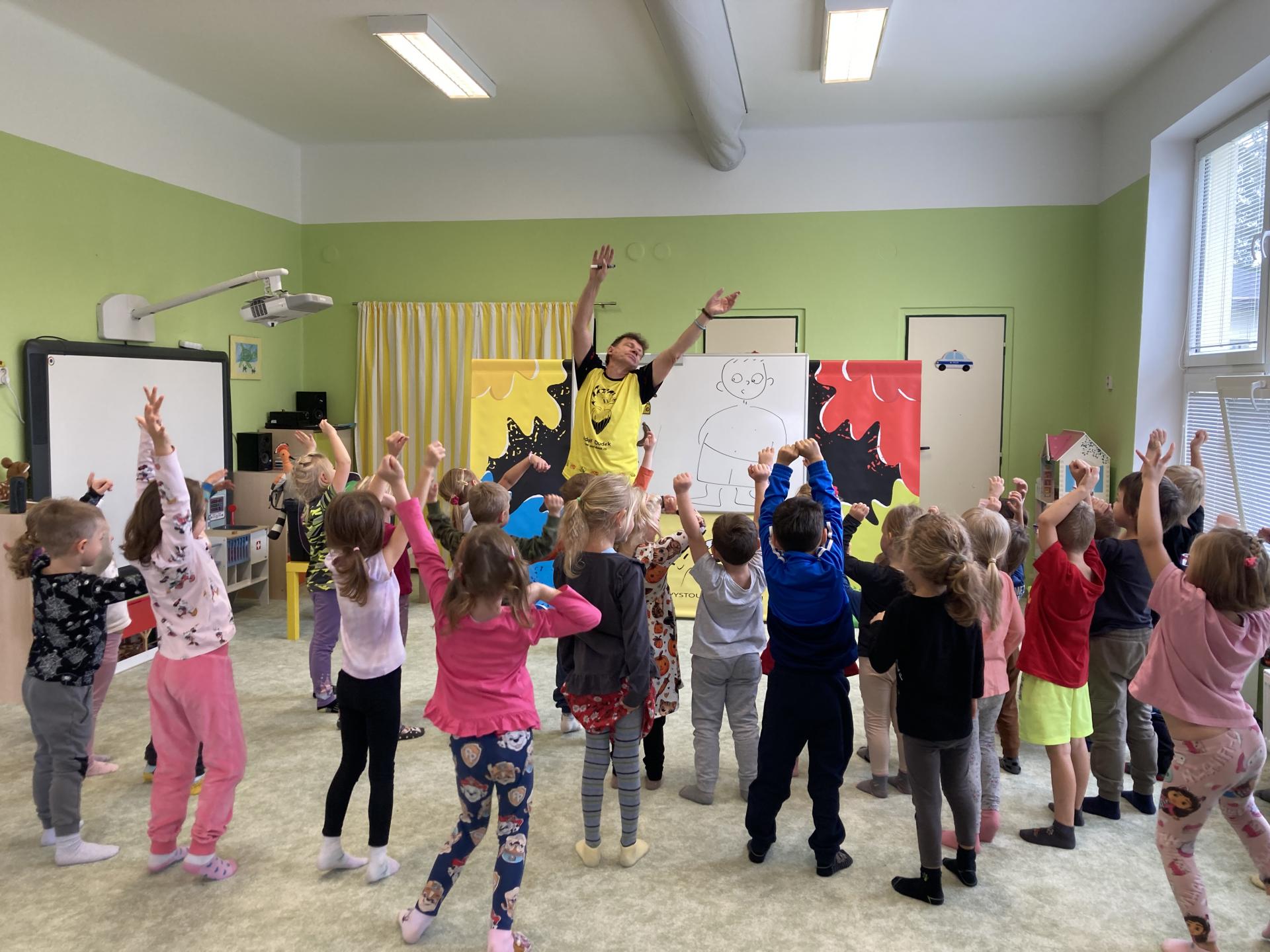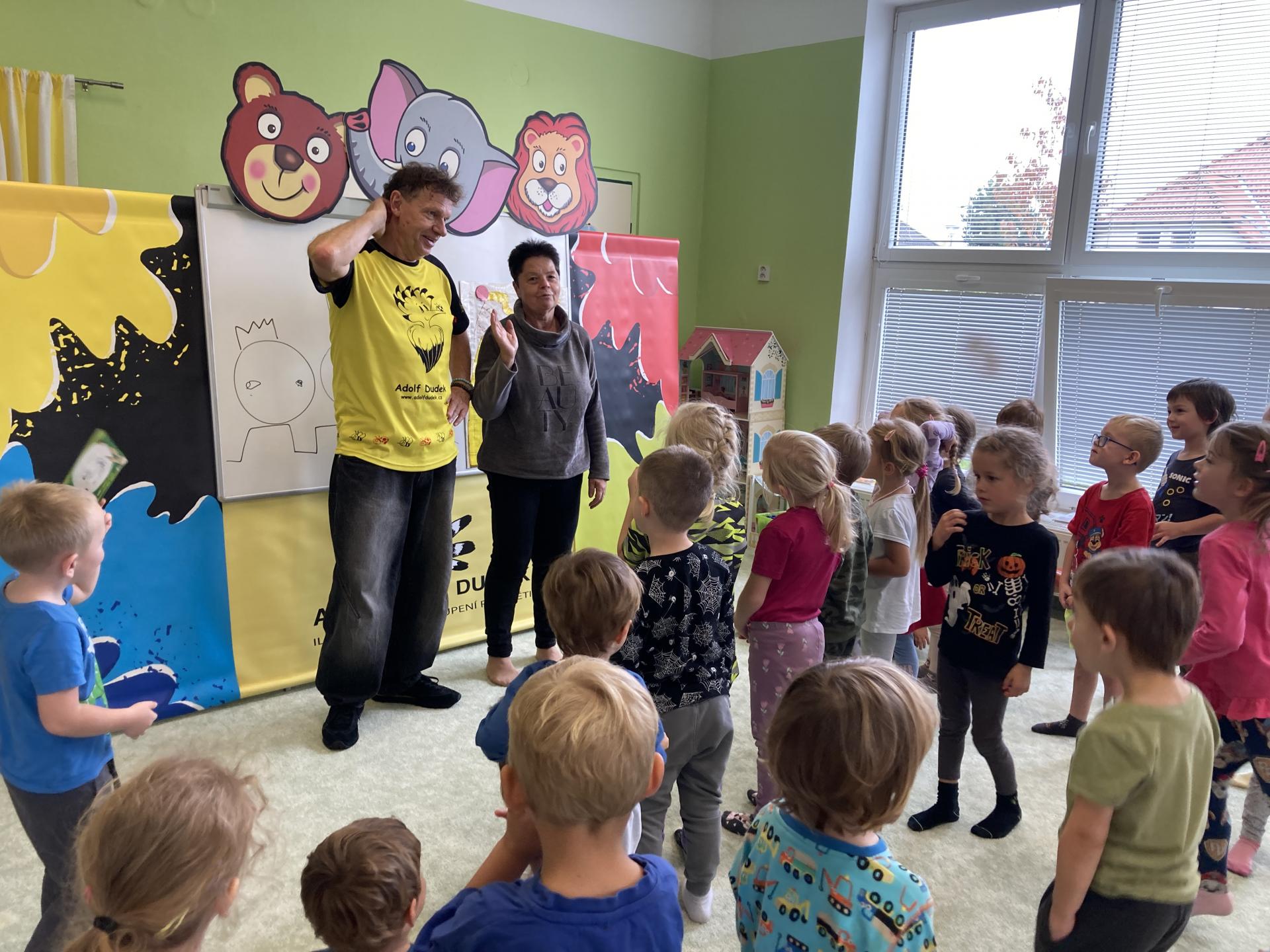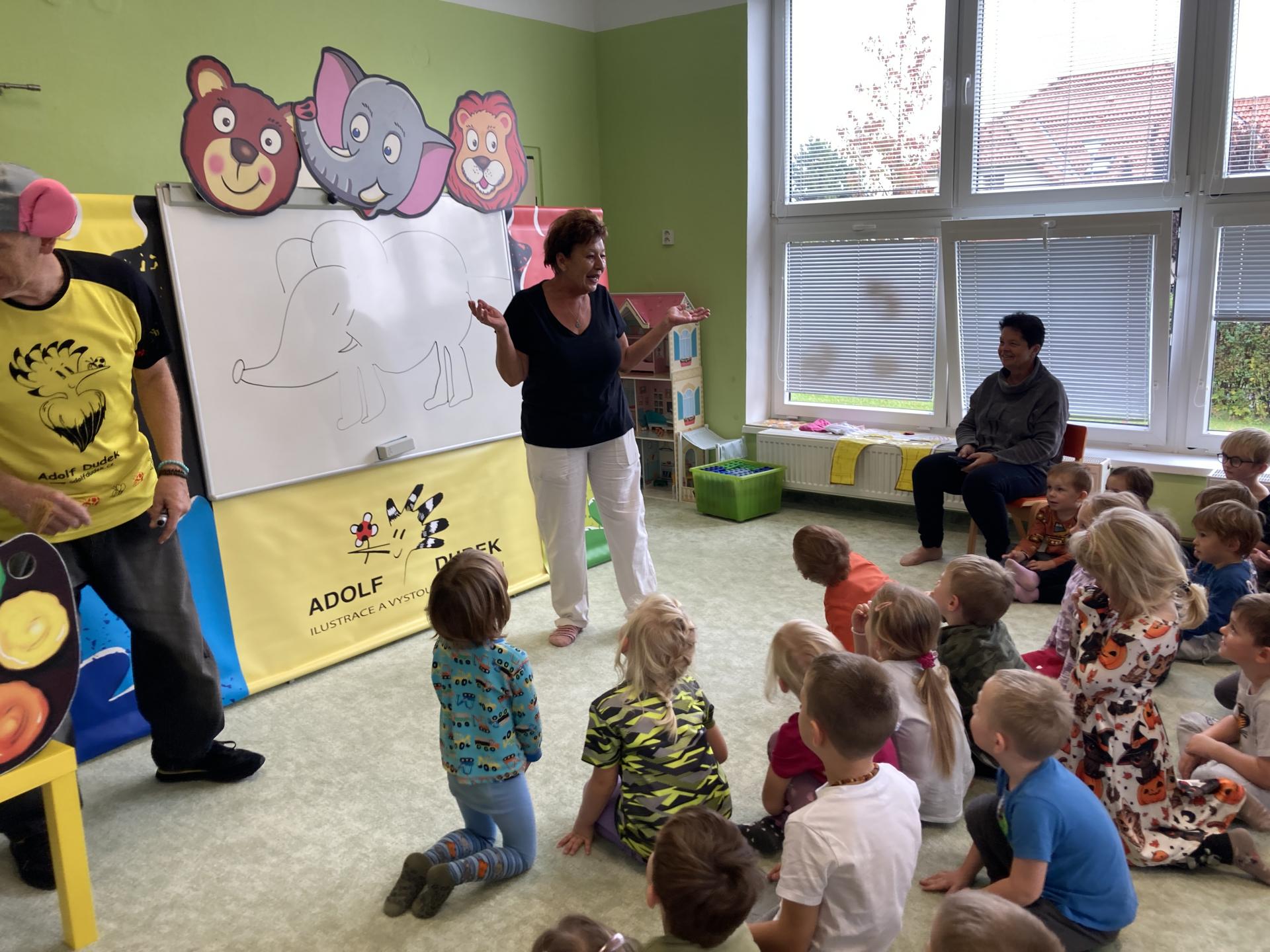 Ilustrátor Adolf Dudek na návštěvě ve školce
